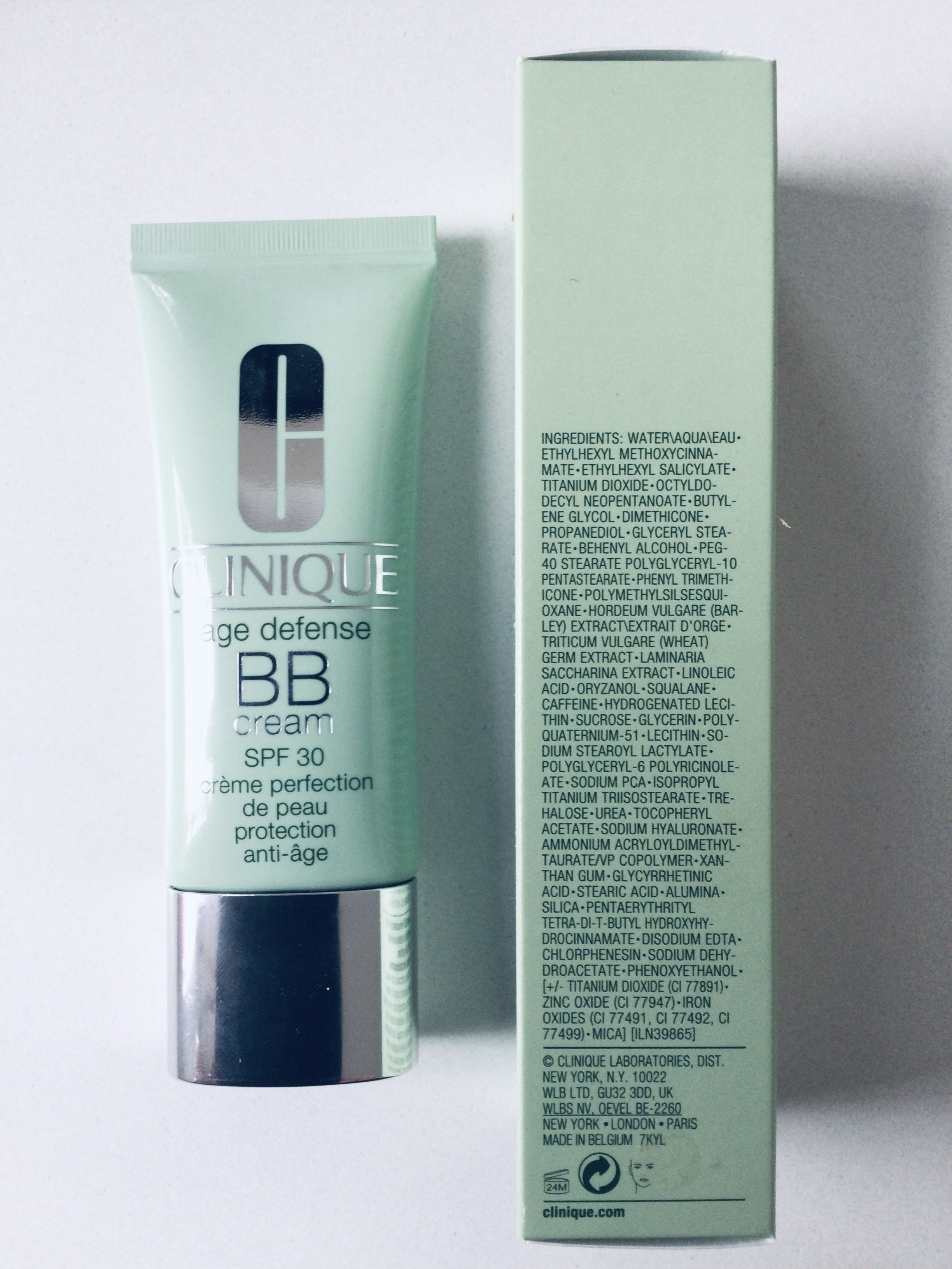 De Clinique Age Defense BB Cream SPF30 maakt gebruik van exact dezelfde zonnefilters als de Even Better Glow, al kan het niet anders dat de verhoudingen wat hoger zullen zijn gezien de hogere beschermingsfactor. Bovendien werden ook een aantal iets gesofisticeerdere hydraterende elementen toegevoegd zoals squalaan, sucrose en urea. Daarnaast helpt cafeïne onder andere zonneschade herstellen. Deze Defense BB Cream is een iets vollere crème, die je ook met je vingers kan aanbrengen (de warmte van je handen zal de crème trouwens iets makkelijker doen aanbrengen op je huid), maar je kan uiteraard ook een kwast gebruiken voor een betere dekking. Naar mijn gevoel geeft deze BB Cream iets meer dekking dan de Even Better Glow, ik heb bij dit product ook minder behoefte aan bijpoederen na een halve dag (wat ik bij de Glow wel nodig heb om het glimeffect tegen te gaan). Ter info, ik heb een normale tot gemengde huid. Qua gebruik is deze BB Cream daarom mijn favoriet, al mis ik hier wel een aantal antioxidanten die in de Glow wel terug te vinden zijn… Maar echt een dilemma wordt het niet, de BB Cream gebruik ik graag in de lente en zomer, al volstaat de zonnebescherming enkel voor dagen op kantoor. Kom je vaker buiten, dan heb je van zodra de UV-index boven de 3 stijgt echt wel nood aan een betere zonnebescherming.
