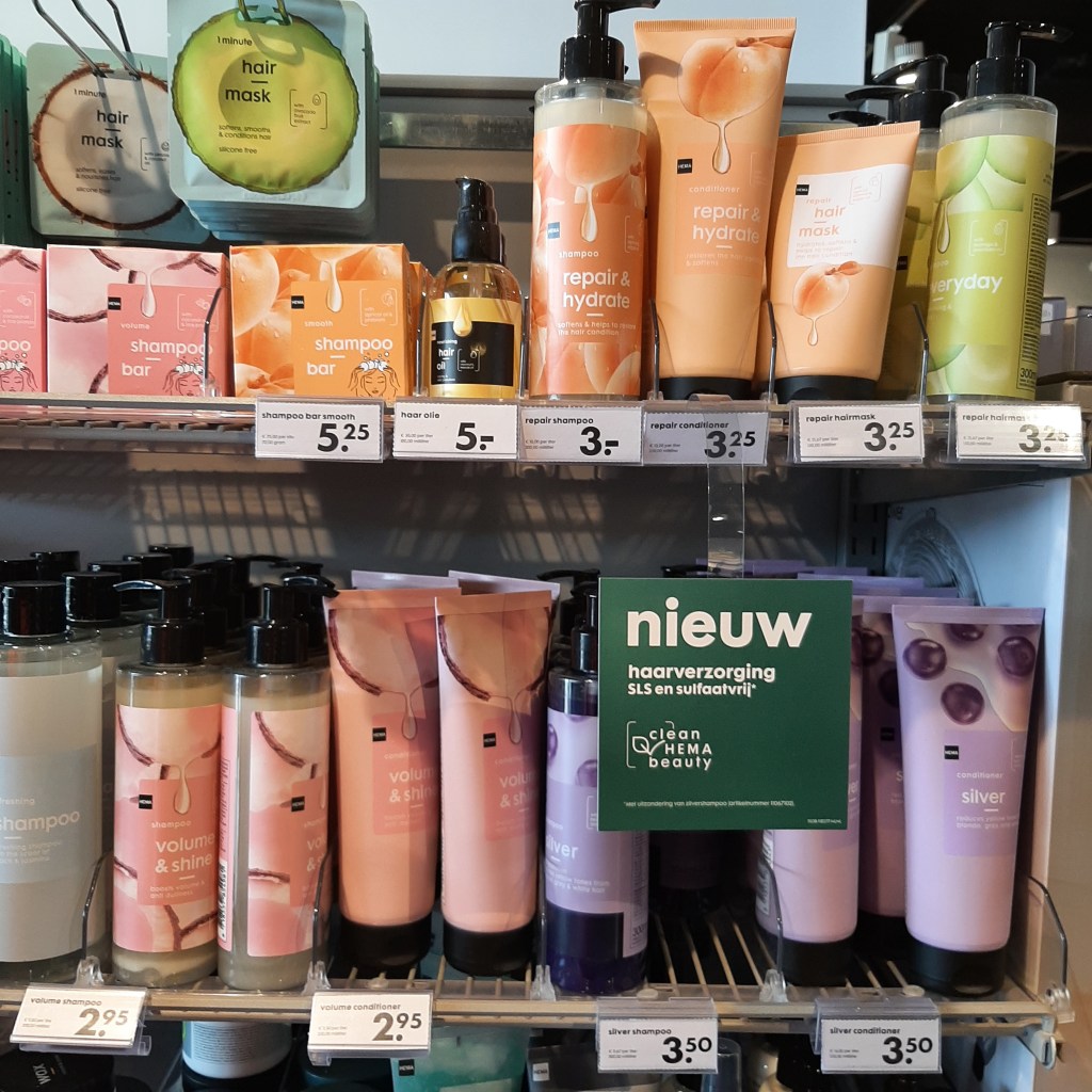 Desalniettemin worden sulfaten nog heel vaak toegepast in reinigers en shampoos, omdat ze zo goedkoop en zo goed ingeburgerd zijn. En als je ze niet al te vaak of veelvuldig gebruikt, kan het goed zijn dat je er niet eens zo veel last van hebt. Maar we kiezen natuurlijk liefst bewust voor betere producten, vandaar dat we graag met de nieuwe haarverzorging van Hema aan de slag gaan!