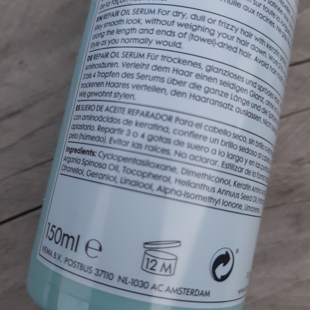 En tenslotte heb ik de puntjes ook nog apart een beurt gegeven met het Repair Olie Serum, op basis van argan- en zonnebloemolie, verrijkt met keratine aminozuren, voor sterkere punten en zachte lokken. Je hebt maar een paar druppels nodig van dit serum en je brengt het enkel aan op de lengtes en vooral op de punten van je haar, om het niet te verzwaren.