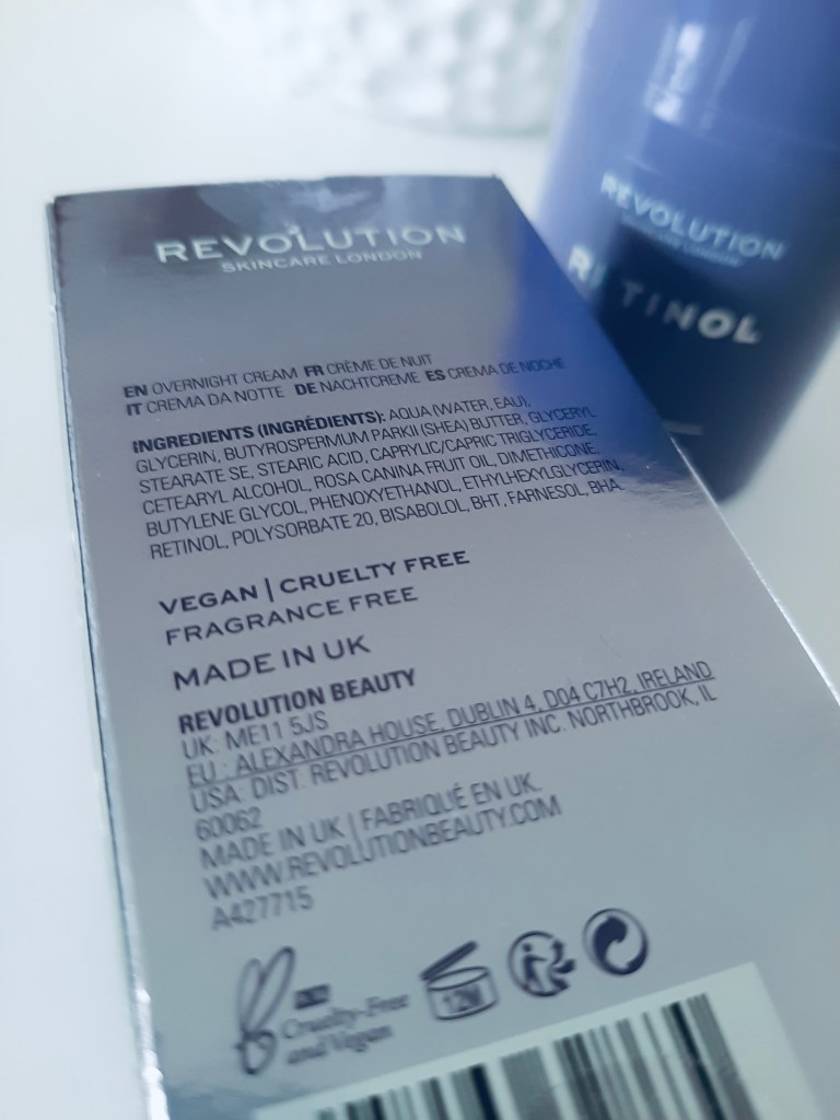Met retinol zal je dus niet dezelfde huidverjongende resultaten behalen als met vitamine A-zuur, maar je kan er wel succes mee boeken. Op voorwaarde dat het ingrediënt in de juiste concentratie aanwezig is (0,1-1%), vers is en goed bewaard blijft. Vandaar de keuze voor de Revolution Skincare Retinol Overnight Cream: een concentratie van 0,1% retinol in een luchtdichte pompverpakking, verrijkt met diverse hydraterende ingrediënten (onder andere glycerine en shea butter).