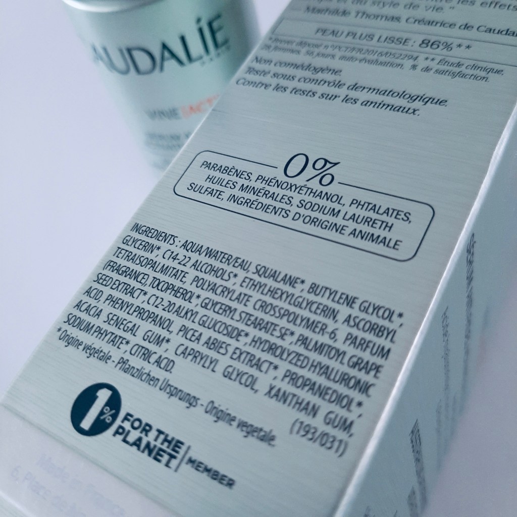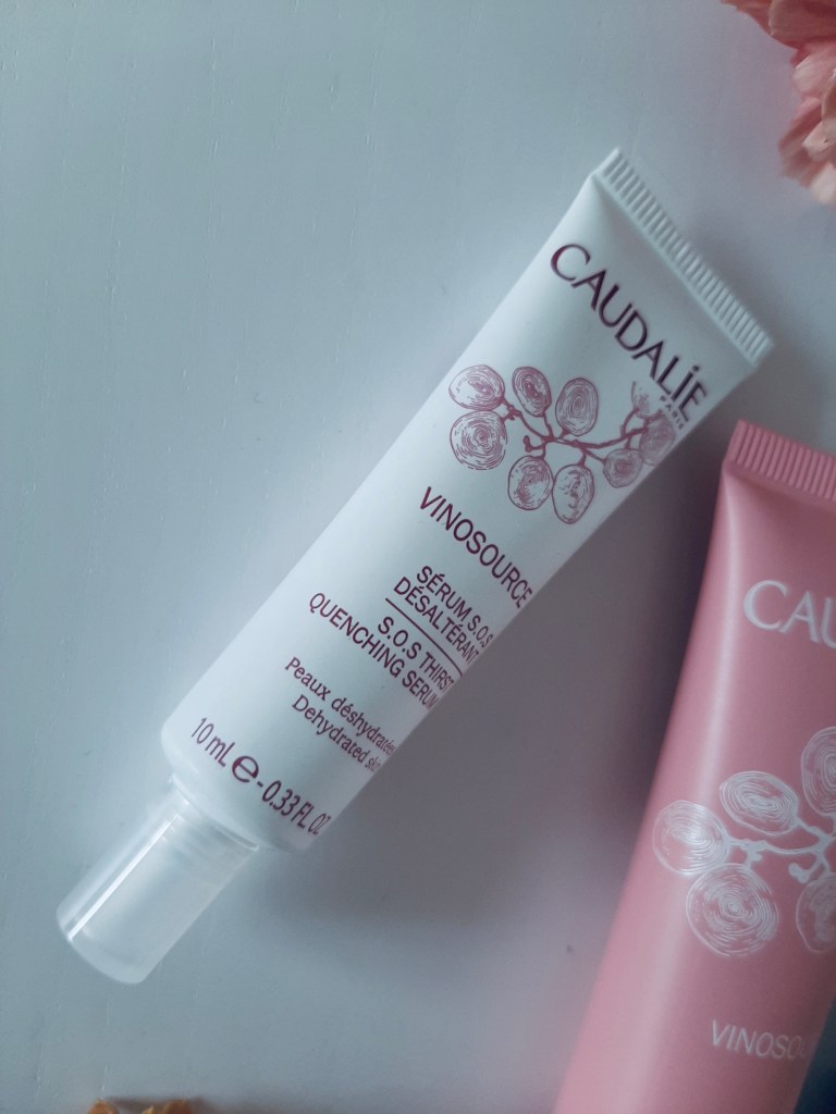 Om mijn skincare routine ’s ochtends te starten gebruik ik graag dit SOS serum (indien nodig, wanneer mijn huid bijvoorbeeld nood heeft aan wat extra vocht en voeding). De basis is het voor Caudalie typerende druivenwater, rijk aan antioxidanten, versterkt met een andere antioxidant afkomstig uit de druif: het druivenpitextract. Daarnaast zijn een aantal vochtinbrengers toegevoegd zoals glycerine, butyleen glycol en squalaan (hydrateert en wordt snel geabsorbeerd), én hyaluronzuur, dat grote hoeveelheden vocht kan binden.