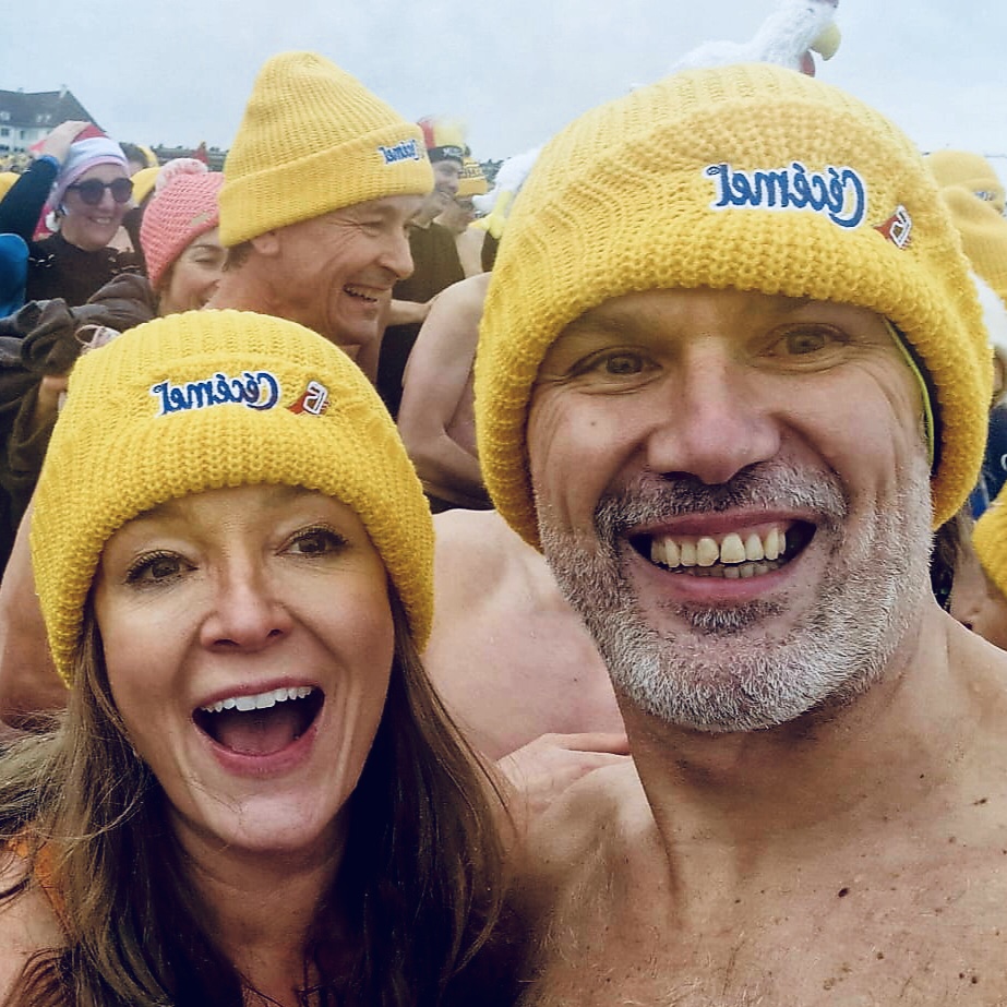 En ondanks de kou alleen maar vrolijke gezichten op het strand, en evenveel kleurrijke en soms erg originele badpakken. Een sprong in het ijskoude water is altijd bijzonder. De kou is nog net draaglijk, maar het is vooral het gevoel en de kick die je krijgt, die het zo verslavend maakt. En het symboliseert hoe we het nieuwe jaar willen aanvangen: met heel veel positiviteit, een dosis lef en een vleugje gekte. Want dat zeggen we ook telkens weer als we met onze blote voeten in het koude zand staan: zijn we niet een beetje gek?